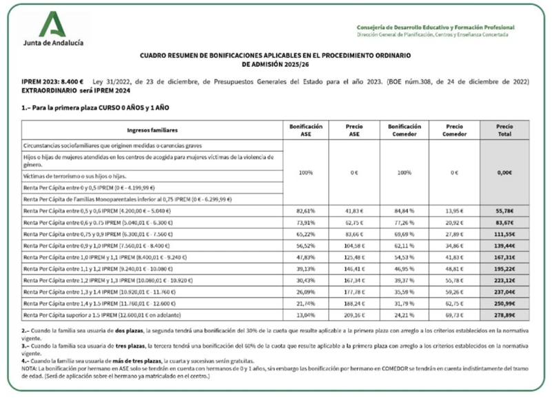 Periodo de admisión Curso 2026/27